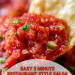 This quick and easy 5 Minute Restaurant Style Salsa is vibrant, fresh, and packed with authentic flavors. Made with simple ingredients like tomatoes, onion, jalapeno, cilantro, and lime juice, it delivers the perfect balance of heat and tang. Ideal for serving with tortilla chips or as a complement to your favorite Mexican dishes, this salsa can be enjoyed immediately or after a day of resting for deeper flavor.