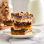 Finally, sprinkle the remaining toasted almonds on top of the melted chocolate for extra texture and nutty flavor. Place the pan in the refrigerator for at least 2 hours to let everything set firmly before slicing into those irresistible pieces to enjoy.