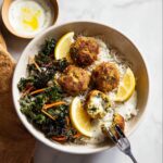 - Prepare Sauce: While the balls bake, mix the plain yoghurt, lemon zest, lemon juice, minced garlic, extra virgin olive oil, salt, and pepper in a small bowl. Set the sauce aside for at least 20 minutes to allow the flavors to meld together.