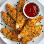 Crispy and flavorful baked chicken tenders coated in a seasoned breadcrumb mixture, perfect for a quick and healthy meal. These tenders are baked to golden perfection, offering a delicious alternative to fried chicken with a satisfying crunch and tender interior.