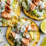 - Assemble the Tacos: Once the salmon is cooked, use a fork to break it into bite-sized pieces. Warm the tortillas if desired, then assemble each taco by layering salmon pieces, a dollop of the lime garlic yogurt sauce, diced avocado, and shredded lettuce. Serve immediately with lime wedges for added zest.