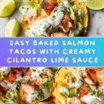 While the salmon is baking, whip up the sauce by combining Greek yogurt, lime juice, minced garlic, chopped cilantro, and a pinch of salt and pepper in a bowl. Stir it gently and taste—this bright, creamy sauce will perfectly complement the spicy baked salmon, adding a zest and creaminess that ties the tacos together beautifully.