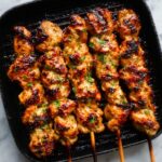 - Thread the Chicken: Skewer the marinated chicken cubes onto skewers, leaving small gaps between the pieces for even cooking; avoid overcrowding.