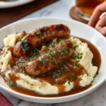 - Serve: Spoon the creamy colcannon onto plates, place the cooked bangers on top, and generously ladle the flavorful Guinness onion gravy over the sausages.