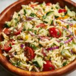 A vibrant and refreshing Best Orzo Pasta Salad combining tender orzo pasta with crisp vegetables, tangy feta cheese, and a zesty olive oil and red wine vinegar dressing. Perfect as a light meal or a flavorful side dish, this salad is easy to prepare and delightful to serve chilled.
