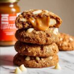 Try serving your Biscoff Stuffed Cookies Recipe stacked high on a rustic wooden board with small bowls of Biscoff spread and white chocolate chips for dipping and snacking fun. You could even turn them into cookie sandwiches with a layer of vanilla buttercream or extra Biscoff spread in between for a show-stopping dessert.