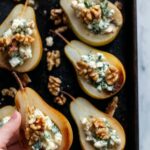 This Blue Cheese Stuffed Pears recipe offers a delightful combination of sweet, savory, and slightly spicy flavors. Bosc pears are baked until tender, then filled with Danish blue cheese, chopped walnuts, and fresh thyme, creating an elegant appetizer or side dish perfect for entertaining or a sophisticated snack.