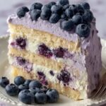 This Blueberry Cream Cake is a delightful homemade dessert featuring tender, fluffy layers of vanilla cake filled and topped with luscious blueberry compote and whipped cream. Lightly sweetened and bursting with the fresh flavor of blueberries and a hint of lemon, this cake is perfect for any occasion, offering a balance of fruity freshness and creamy richness.