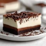 Bake the brownie for 20 minutes until it just starts to set but isn’t fully cooked through. This step is crucial as it prevents the brownie from overbaking once the cheesecake layer is added on top. Once done, remove it from the oven and allow it to cool slightly to prepare for the next layer.