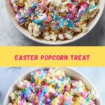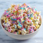 This popcorn mix pairs beautifully with light and fresh treats like fruit salad or pastel-colored cupcakes to balance out the richness. If you’re serving it at a party, consider accompanying it with a refreshing lemonade or a fruity mocktail to keep things bright and cheerful.