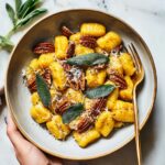 This Butternut Squash Gnocchi with Brown Butter Sage Pecan Sauce is a comforting and elegant dish featuring pillowy homemade gnocchi made from roasted butternut squash, ricotta, and Parmesan. Finished with a nutty brown butter sauce infused with crispy sage leaves and toasted pecans, it offers a perfect balance of creamy texture and rich, savory flavors. Ideal for a cozy dinner or special occasion.