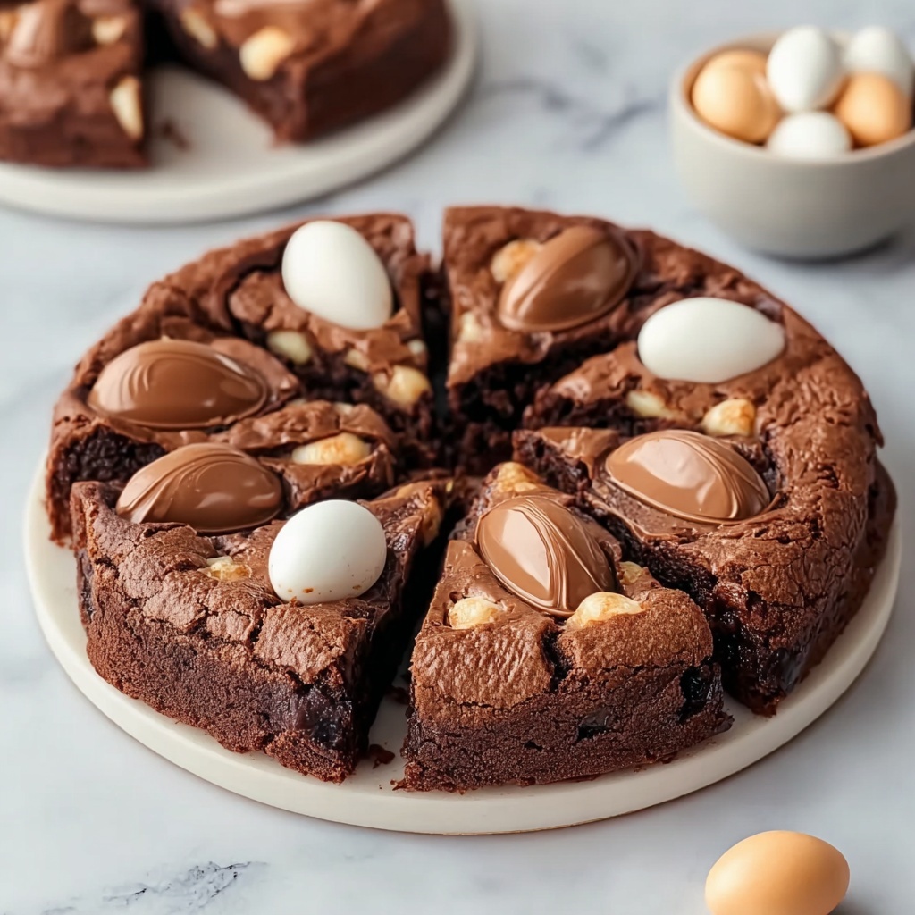 A light dusting of powdered sugar or a drizzle of melted chocolate adds an elegant finishing touch. For a playful twist, top each brownie square with a small piece of Cadbury Creme Egg to highlight the ingredients inside.