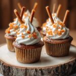 Arrange pretzel rods around the “fire” to resemble logs, and place your marshmallow sticks right on top. This final step brings your Camp Fire Cupcakes Recipe to life — a whimsical, edible campfire everyone will love.