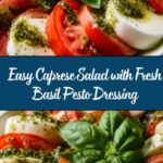 A fresh and vibrant Caprese Salad featuring ripe tomatoes, creamy fresh mozzarella, and aromatic basil, complemented by a homemade pesto dressing. This simple Italian classic is perfect as a light appetizer or side dish, combining bright flavors and creamy textures in just 20 minutes.