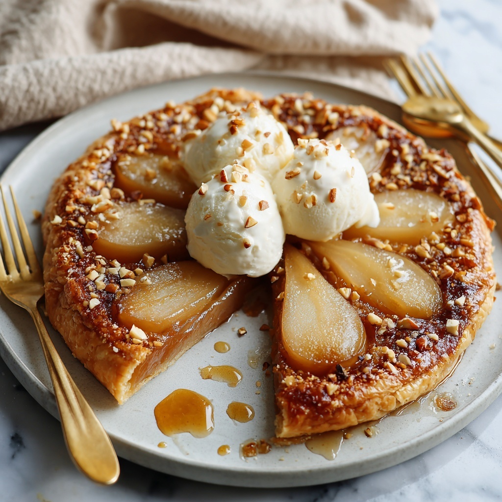 Once baked, the galette is best enjoyed warm to truly savor the melding of spiced pears, almond cream, and buttery pastry. Serve it as is or add a dollop of freshly whipped cream or a scoop of vanilla ice cream for an indulgent touch that makes every bite melt in your mouth.