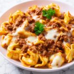 This Cheesy Beef Tortellini Enchilada Casserole is a delicious and comforting dish combining tender cheese tortellini, savory ground beef, and zesty enchilada sauce, all topped with melted mozzarella cheese. Perfect for a family dinner, this casserole brings a fusion twist with Mexican flavors baked into an Italian pasta favorite.