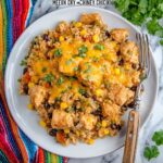 This Cheesy Mexican Chicken and Rice is a flavorful one-pan meal featuring tender chicken, seasoned with taco spices, cooked with instant rice, beans, Mexicorn, salsa verde, and topped with melty Mexican cheese and fresh cilantro. Ready in 30 minutes, it’s a quick and satisfying dish perfect for busy weeknights.