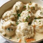 This classic Chicken and Dumplings recipe features a creamy, comforting chicken soup with tender vegetables and fluffy, soft dumplings. Perfect for a cozy meal, it combines wholesome ingredients like shredded chicken, carrots, and celery with a rich broth thickened by a buttery flour base and finished with optional creaminess. The dumplings are light and herby, cooked directly in the simmering soup for convenience and flavor.