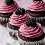 - Frost and Garnish: Spread the blackberry buttercream over the cooled cupcakes using a spatula or piping bag. Garnish with fresh blackberries if desired for an elegant touch.