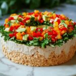 Celebrate the holidays with this festive Christmas Taco Cheese Ball Wreath. This creamy, flavorful cheese ball blends cream cheese, Monterey Jack, tangy taco seasoning, and fresh herbs for a delightful appetizer. Shaped like a wreath and decorated with fresh tomato, onion, jalapeno, and cilantro, it’s perfect for holiday gatherings and pairs wonderfully with your favorite chips or crackers.