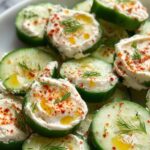 This Cool Cucumber Snack is a refreshing and healthy appetizer perfect for a quick bite or light snack. Crisp cucumber slices are topped with creamy hummus and sprinkled with paprika, salt, and pepper. Optional garnishes like fresh dill, red pepper flakes, and lemon zest add vibrant flavors that elevate this simple snack to something special. Ready in just 10 minutes, it’s ideal for hot days or whenever you need a cool, satisfying treat.