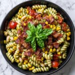 How to Serve Corn Pasta Salad with Bacon and Creamy Pesto Dressing Recipe
