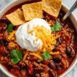 This Cornbread Chili Casserole is a hearty and comforting dish combining savory seasoned ground beef chili with a fluffy cornbread topping baked to golden perfection. Perfect for cozy family dinners, it features a blend of chili beans, diced tomatoes, and cheese, all layered and baked together for a delicious one-pan meal.