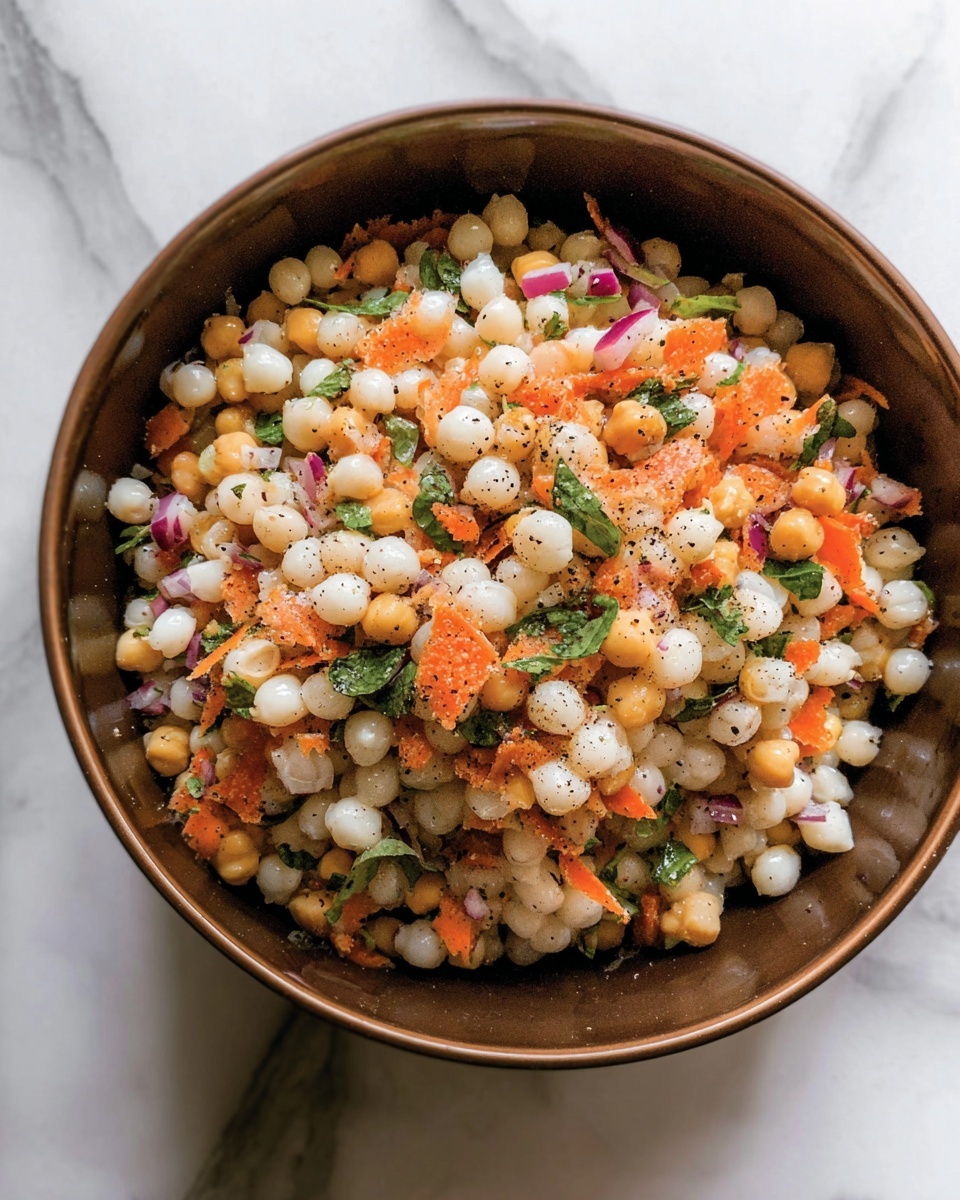 Start by cooking your Israeli couscous according to the package instructions. I simmered mine for about 17 minutes until tender yet chewy, then drained and rinsed it under cool water to stop the cooking process and keep the grains from sticking together. This step sets the stage for the perfect base texture.