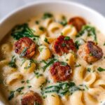 This Cozy Creamy Parmesan Sausage Ditalini Soup is a hearty and comforting dish perfect for chilly days. Featuring Italian sausage, tender ditalini pasta, and a rich, creamy broth enhanced with Parmesan cheese and fresh spinach, this soup is both satisfying and flavorful. Easy to prepare on the stovetop, it combines simple ingredients for an indulgent yet balanced meal that serves the whole family.