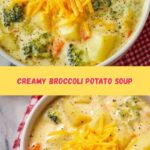 A comforting and creamy broccoli potato soup made with fresh vegetables, rich chicken broth, and sharp cheddar cheese. This hearty soup combines shredded carrots, celery, onion, garlic, potatoes, and broccoli, slowly cooked and blended with cream and cheese for a velvety texture. Perfect for warming up on a chilly day.
