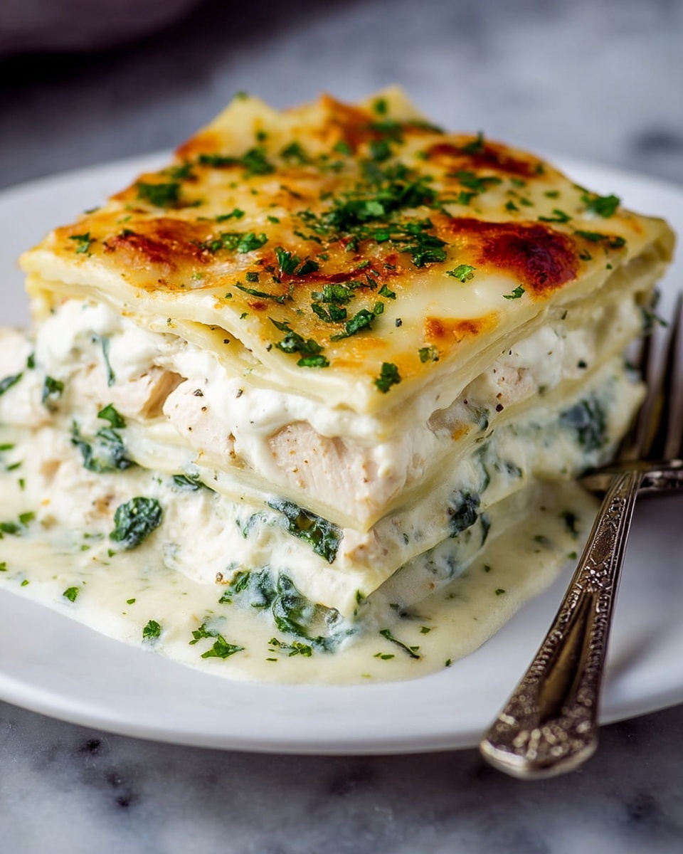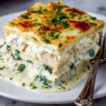 This Creamy Chicken Lasagna with Spinach and Cheese Recipe freezes wonderfully. Wrap individual slices or the entire dish tightly in plastic wrap and aluminum foil to protect from freezer burn. Freeze for up to 3 months, so you always have a comforting meal ready to go.