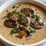This creamy mushroom soup is a comforting and rich recipe featuring a blend of fresh mushrooms, aromatic herbs, and a smooth cream base. Perfect as a starter or light meal, it combines the earthy flavor of mushrooms with the silky texture of cream, enhanced with garlic, thyme, and a hint of soy sauce for depth. Ready in just 35 minutes, this vegetarian European-inspired soup brings warmth and satisfaction to your table.