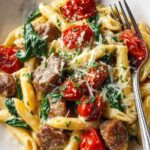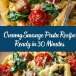 This creamy sausage pasta is a quick and comforting dish combining savory Italian sausage with a rich, cheesy cream sauce, fresh spinach, and juicy cherry tomatoes over perfectly cooked pasta. Ready in just 30 minutes, it’s an ideal weeknight dinner that’s both flavorful and satisfying.