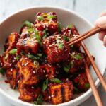 This Crispy Gochujang Korean Tofu recipe offers a deliciously spicy and savory plant-based dish featuring crispy pan-fried tofu cubes coated in a flavorful gochujang-based sauce. Perfect as a snack, appetizer, or main course, it combines the satisfying crunch of golden tofu with the rich, tangy, and mildly sweet flavors of Korean chili paste, garlic, and ginger, garnished with toasted sesame seeds and fresh green onions.