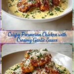 This Crispy Parmesan Chicken with Garlic Cream Sauce is a deliciously golden and crunchy chicken breast coated with a seasoned breadcrumb mixture and baked to perfection. Served with a rich, creamy garlic Parmesan sauce, this dish combines crisp textures with a smooth, flavorful topping, making it a perfect centerpiece for a comforting dinner.