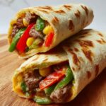 Place the folded wrap seam-side down on a warm pan. Let it cook undisturbed for about 2 to 3 minutes per side, until the outside turns crispy and golden brown. This step creates that irresistible crunch that sets this Crispy Steak Wraps Recipe apart. Once perfectly crisped, slice it in half to reveal the colorful, cheesy filling inside.