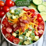 Pour the prepared ranch dressing over the cucumbers and tomatoes. Then sprinkle in the shredded cheddar cheese and chopped, cooked bacon. Toss everything gently but thoroughly to ensure every piece is well coated with creamy ranch and scattered with flavorful cheese and crispy bacon bits. Finish with a pinch of salt and freshly ground black pepper to taste.