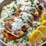 For a stunning presentation, serve the chicken and rice in individual shallow bowls, so the tzatziki sauce and garnishes shine on top. Another fun idea is to transform it into a layered bowl by adding tabbouleh or fresh greens underneath the rice, turning dinner into a vibrant, colorful experience that’s as visually pleasing as it is delicious.