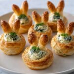 Delight your guests with these adorable and tasty Easter Bunny Crescent Bites, a fun and festive appetizer made with crescent roll dough filled with a creamy cheddar and cream cheese blend, flavored with garlic and Italian herbs, then baked to golden perfection and decorated with seed eyes for a whimsical touch.