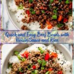 Easy Beef Bowls combine tender ground beef cooked in a flavorful hoisin and soy sauce blend with fresh ginger and garlic, served over fluffy jasmine rice. This quick and simple recipe is perfect for a weeknight dinner and can be garnished with scallions and sesame seeds for added texture and flavor.