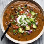 This easy black bean soup is a hearty and flavorful meal perfect for a quick weeknight dinner. Made with fire-roasted tomatoes, black beans, and a blend of spices, it offers a smoky, comforting taste with a creamy texture achieved by blending part of the soup. Topped with fresh cilantro, sour cream, or avocado, this soup is both nutritious and satisfying.