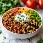 Nothing elevates a taco skillet quite like fresh garnishes. A dollop of sour cream adds creamy coolness that balances the spices, while chopped cilantro brings a burst of herbal brightness. Sliced jalapeños provide a kick for those who love heat, and diced avocado adds a buttery richness, making every bite fresh and delicious.