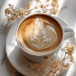 This latte pairs beautifully with light breakfast pastries like almond croissants, biscotti, or even a fresh fruit bowl. The natural sweetness and creaminess of the drink balance well with flaky or fruity textures, creating a well-rounded snack or breakfast.