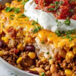 This Easy One Pot Mexican Rice Casserole is a flavorful and hearty dish combining seasoned ground beef, rice, beans, and cheese all cooked together in a single pot. Perfect for a family dinner, it features a blend of Mexican spices, tender vegetables, and a cheesy topping that melts to perfection. Serve with fresh cilantro and your favorite taco toppings for a comforting and filling meal with minimal cleanup.