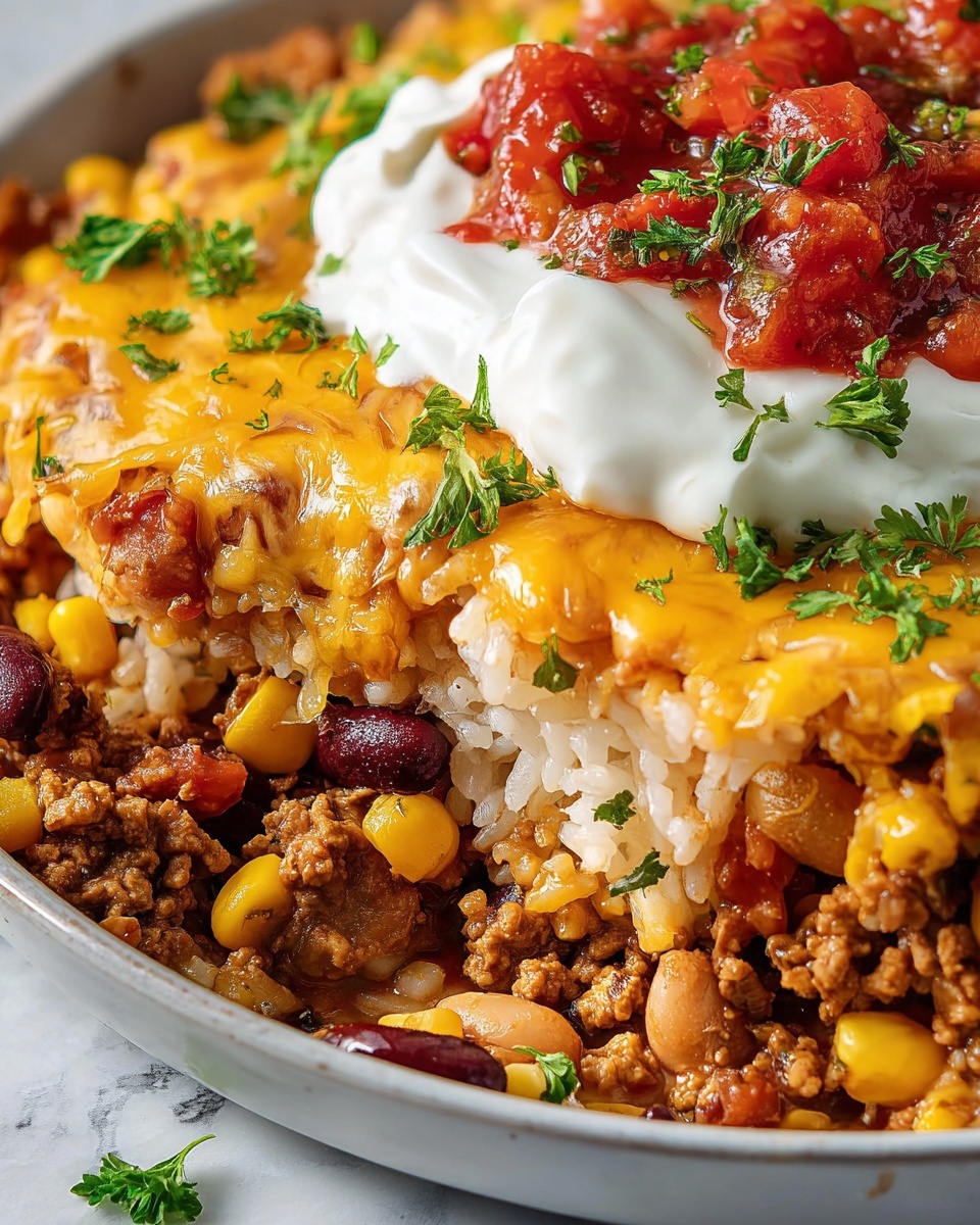 For a fun twist, serve individual portions in mini cast iron skillets or ramekins topped with cheese and fresh garnishes. You can also bake it in a decorative ceramic dish for a festive presentation at family dinners or potlucks. This casserole is as versatile visually as it is in flavor.