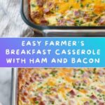 This Farmer’s Breakfast Casserole is a hearty and savory dish perfect for brunch or breakfast gatherings. It combines frozen potatoes with onions and peppers, sharp cheddar cheese, diced ham, crispy bacon, and green onions, all soaked in a seasoned egg and evaporated milk mixture. Baked until golden and set, it’s an easy make-ahead option that can be enjoyed fresh or prepared overnight.