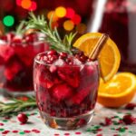 This Festive Red Wine Sangria is a refreshing and aromatic cocktail perfect for holiday celebrations or any festive gathering. Combining Merlot, cranberry and orange juices, and fruity liqueurs, it is infused with cinnamon and garnished with fresh rosemary for a vibrant, flavorful, and visually appealing drink.