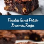 Deliciously fudgy and gluten-free Flourless Sweet Potato Brownies made with mashed sweet potato, almond butter, and rich cocoa powder. These brownies are a healthier alternative, naturally sweetened with maple syrup and studded with dark chocolate chips for an indulgent treat without the flour.