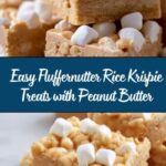 Delight in these gooey and nostalgic Fluffernutter Rice Krispie Treats, combining crispy rice cereal with melted marshmallows and creamy peanut butter for a sweet and satisfying snack. Perfect for parties or an easy dessert, these treats are topped with optional marshmallows and a peanut butter drizzle for an extra burst of flavor.
