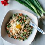 This Fragrant Fried Rice Pilaf is a vibrant and flavorful dish combining aromatic basmati rice with sautéed vegetables, tender eggs, and white beans. Infused with cumin and soy sauce, it offers a deliciously crispy rice crust and a perfect balance of texture and taste. Ideal for a quick, wholesome, vegetarian meal that serves four.